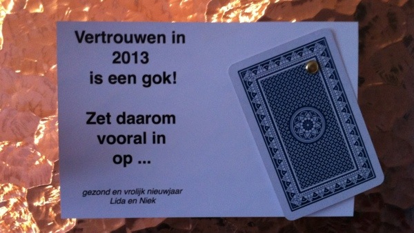 Mijn laatste kans om 46.000.000 euro te winnen met een extra lot voor de Postcodeloterij, Bankgiroloterij of Staatsloterij is verkeken. Ik heb alle aanbiedingen in gesloten, verzegelde, gouden enveloppen aan mijn neus voorbij laten gaan. Daar trappen wij toch niet meer in? Misschien is dat wel het beste voornemen voor het komende jaar: niet meer in die volkomen overtrokken beloftes te trappen maar alleen op jezelf te vertrouwen.