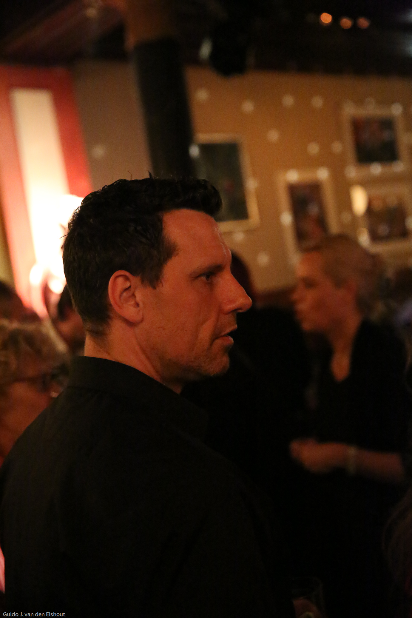 Als je serieus foto’s wil maken van een event, heb je weinig mogelijkheden om contact te leggen. Ik zag Walter oftewel @AdargOltip uit mijn ooghoeken wel strategisch staan bij de hoek van de bar, maar was te druk met camera en lens om even met hem in gesprek te gaan. Hij begreep dat ook. Walt bracht de gemiddelde leeftijd van de deelnemers gelukkig wat omlaag. Walt claimt nog geen 26 te zijn. Gelukkig maakte Walt contact naar aanleiding van de fotoserie van het blogbal die ik op Flickr heb gezet. Dus nu weet ik wie hij is, zelfs ondanks dat niemand een naamkaartje droeg. De organisatie zegt dat iedereen zelf maar voor een naamkaartje moet zorgen. Ik vind dat juist een taak van de organisatie. Werkt zeer drempel verlagend. Zelf stoor ik mij er overingens niet aan. Ik laat mijn lens wel aan het volk snuffelen en die legt vanzelf contact.