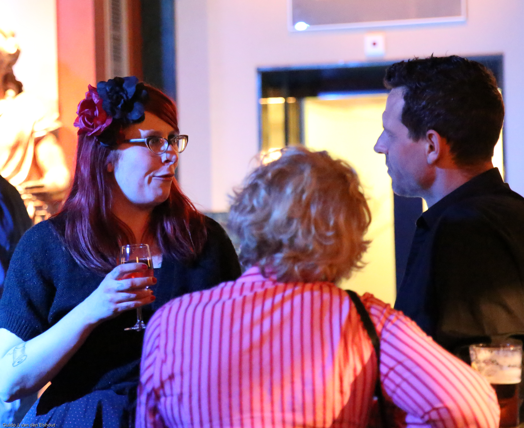 U zag Walter al even verschijnen op mijn vorige post. Hij staat ook op een hele serie foto’s met de rose streepjes dame op de rug gezien, die blij is dat ik haar niet van voren heb gefotografeerd… te kletsen met Electric Luna (zie foto 4). Wie Electric Luna is, moet u vooral zelf verder uitzoeken. Ik noem haar hier vast, om niet gedwongen te worden op de volgende post vooruit te lopen. Ik heb haar ook even gesproken. Het gaat haar goed en ik had haar niet meer gesproken na de laatste Bloggies.