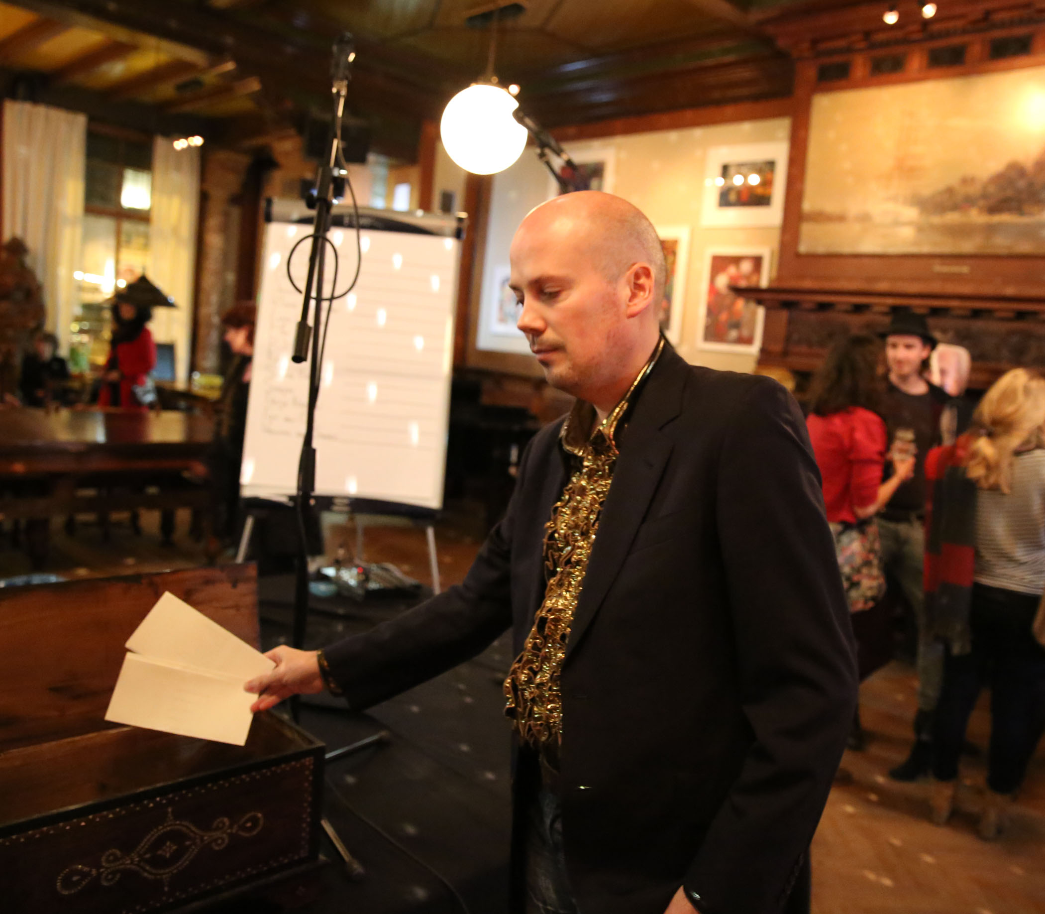 De avond werd officieel geopend door Hedy D’Ancona. Op de eerste foto en profiel tegen de achtergrond van een Amicitiae lamp ter herinnering aan het feit dat het die vrijdag volle maan was.
