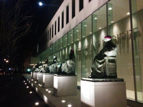 Vorige afbeelding Volgende afbeelding standbeelden hoge raad Ook de denkers voor het gebouw van de Hoge Raad waren ’s nachts voorzien van een ooglap en bandana Dit delen:TweetVind-ik-leuk Aan het laden...