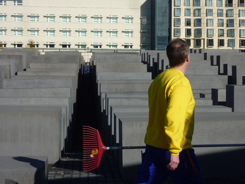 Ik heb het Joden monument in Berlijn ook bezocht en er veel foto’s van gemaakt. De non en de tuinman hierboven zijn daar voorbeelden van. Als de makers van het monument of Berlijn geen interactie met het monument zouden willen toestaan, dan moeten ze maar een hek eromheen zetten.