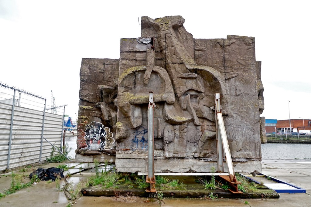 Tot die tijd blijven de betonreliëfs nog even op de kade staan: tenslotte stond het ±20 jaar in Amsterdam te verpieteren dus die paar jaar kunnen er nog wel bij. Omdat de betonreliëfs (6 x 4 x 1 meter) achter elkaar staan, was het niet mogelijk de drie apart vast te leggen, om ze in volle omvang te kunnen zien, moeten we nog even geduld hebben.