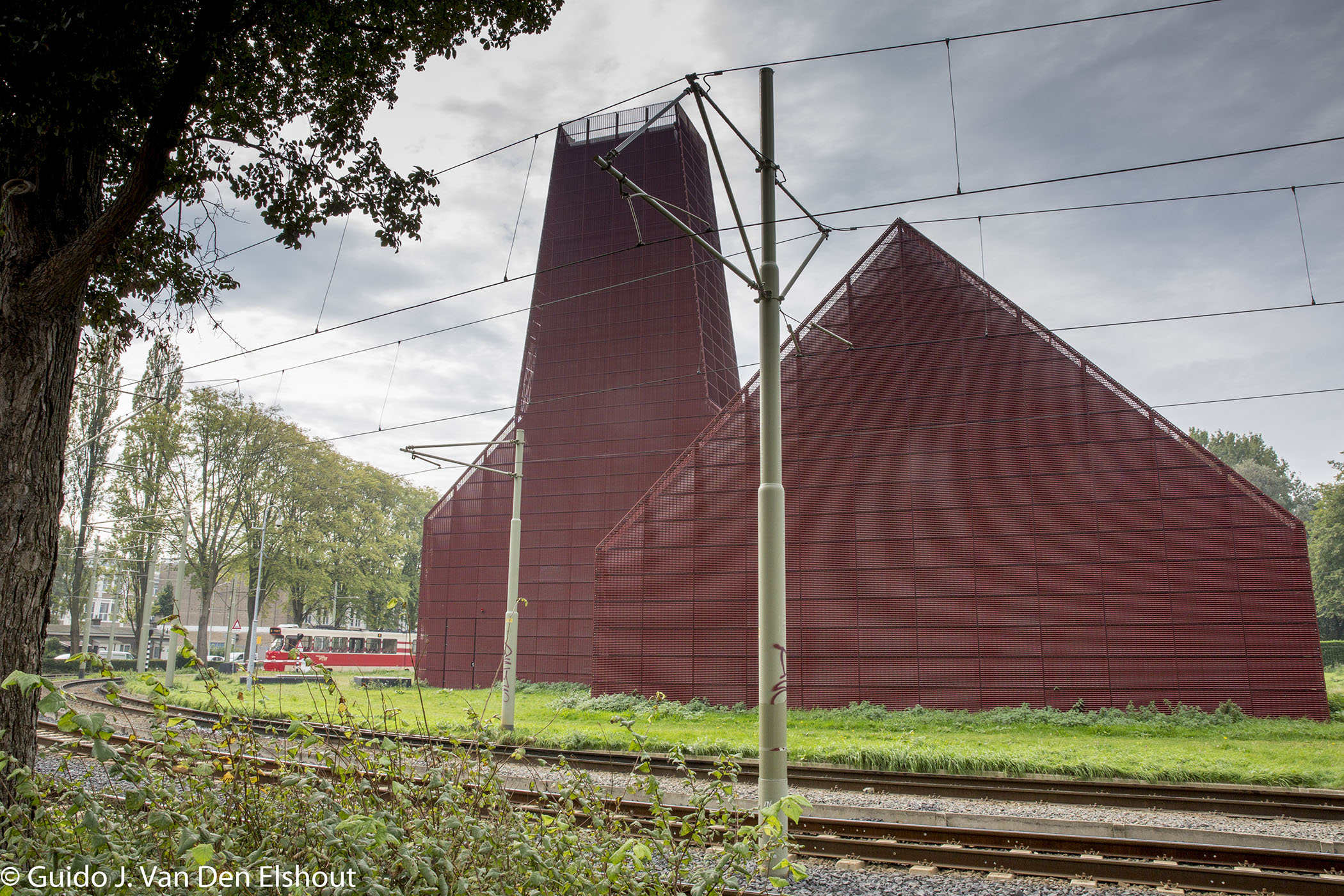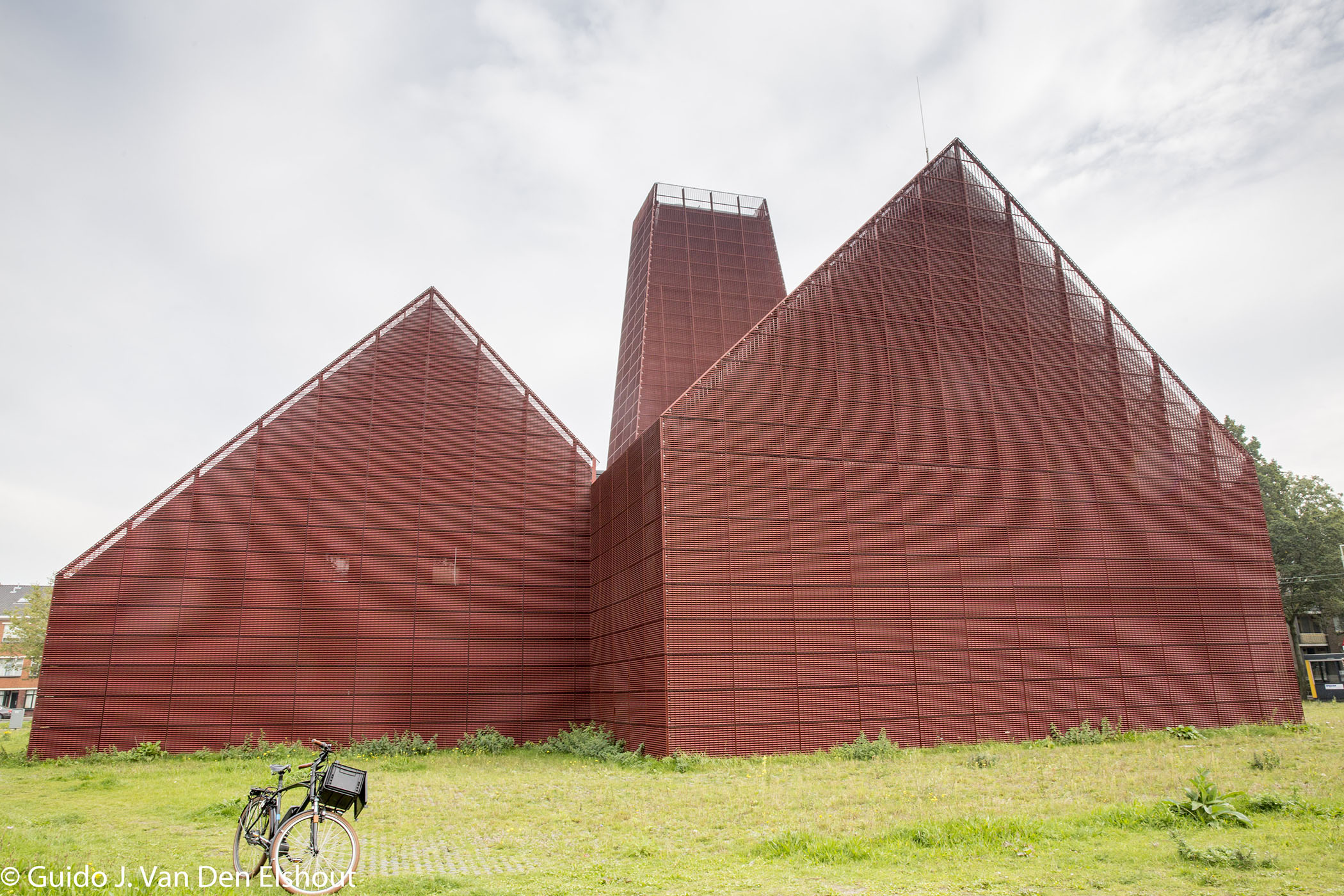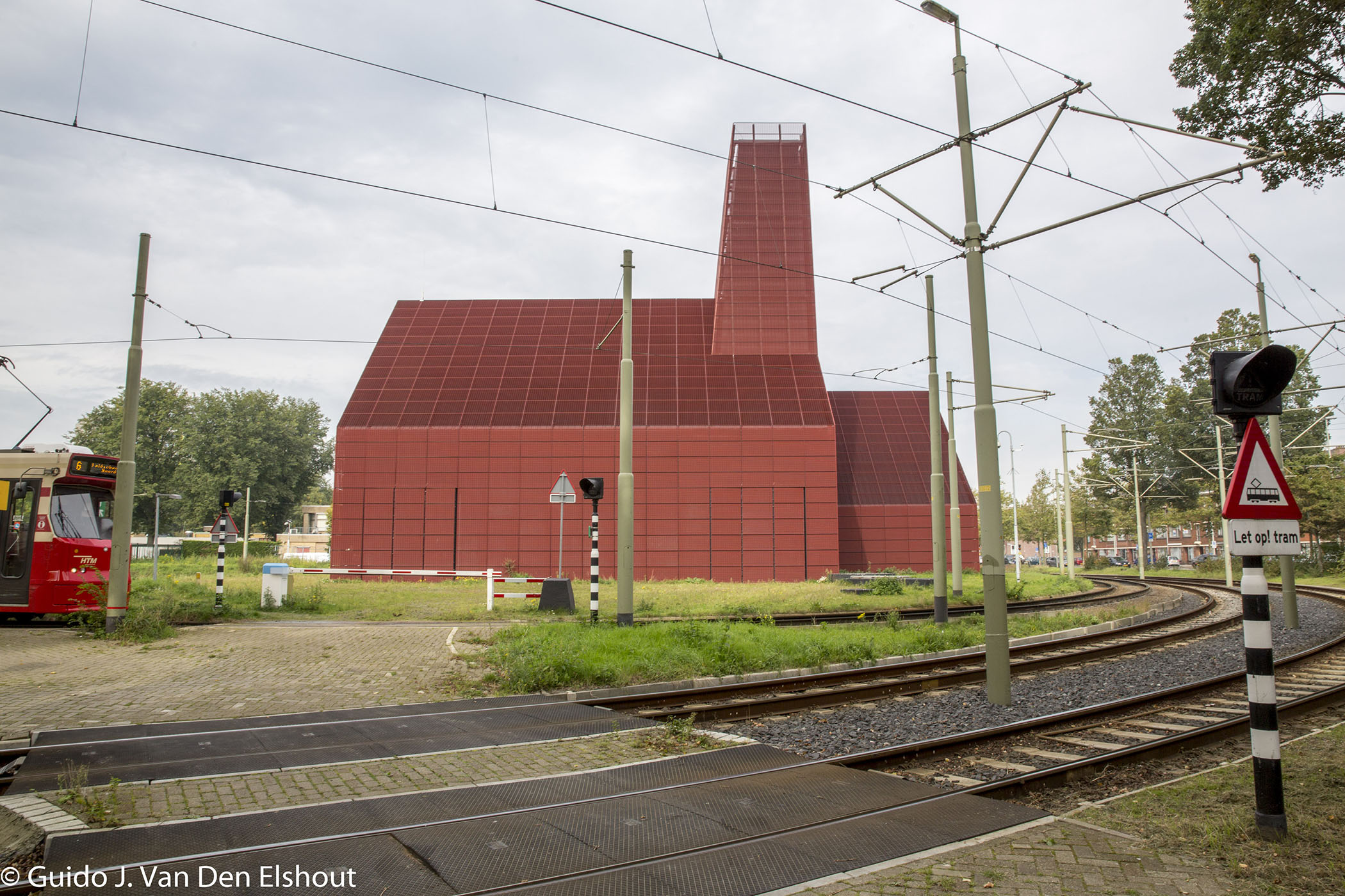 Wanneer je over de Leyweg naar het zuiden rijdt en het Haga (vroeger Leyenburg) ziekenhuis aan je rechterhand houdt, zie je in de verte een soort kerkje staan. Beetje bruin oranje. Dichterbij is het indrukwekkender en lijkt het meer op een kathedraal. Anderen noemen het een “hooischuur”. Het lijkt een bonk roest, ofwel een gebouw dat modieus van een roestende gevel van Cortenstaal is gemaakt, maar het is eenvoudig met steenrood gecoate stalen roosters bekleed.