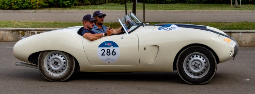 De opname maakte ik gisterenmiddag in Monza vlak na een stempelpost en vlak voor een tijdcontrole achter mijn rug. Stapvoets rijdend op de seconde deze afstand afleggen en een mooie gelegenheid voor serietjes foto’s biedend. Bernhard maakt al jaren deel uit van een groot aantal Nederlanders dat aan dit evenement deelneemt. Kostbare zaak hoor!