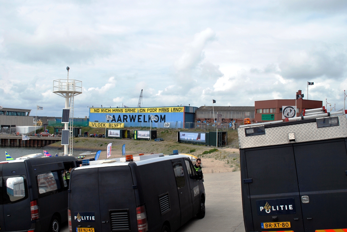 Niet tot ieders genoegen. Er worden deze week verschillende acties gehouden, die de keerzijde van het zeilbotenspektakel onder de aanbracht brengen. Met name de financiering rond de Volvo Ocean Race is een doorn in het oog van de bewoners van onder meer de vrijplaats De Vloek, welke strijd tegen de veryupping van het havengebied.