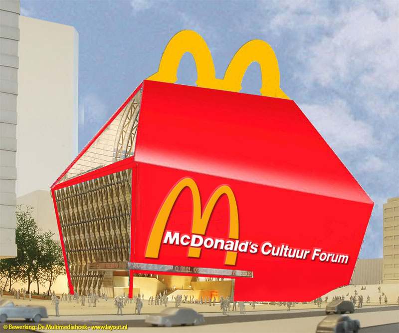 Zij hebben zich aangeboden als sponsor. Als wederdienst hebben ze slechts ‘enkele bescheiden eisen’ gesteld aan het ontwerp. “De vorm van het gebouw paste al prima in het concept”, aldus McDonalds woordvoerder Anjo Kapelaan.