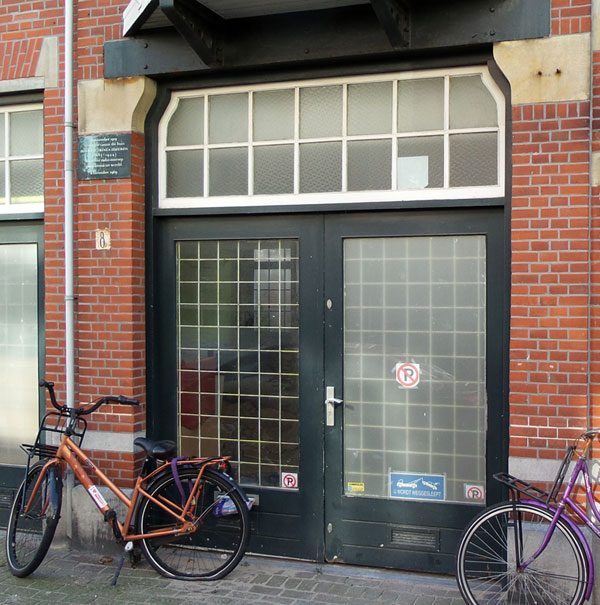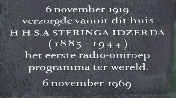 Beukstraat 8, waar Hanso Schotanus à Steringa Idzerda de eerste geregelde radio-uitzendingen ter wereld uitzond.De plaquette. Stevig bijgewerkt met Photoshop, want inmiddels zwaar aangetast.