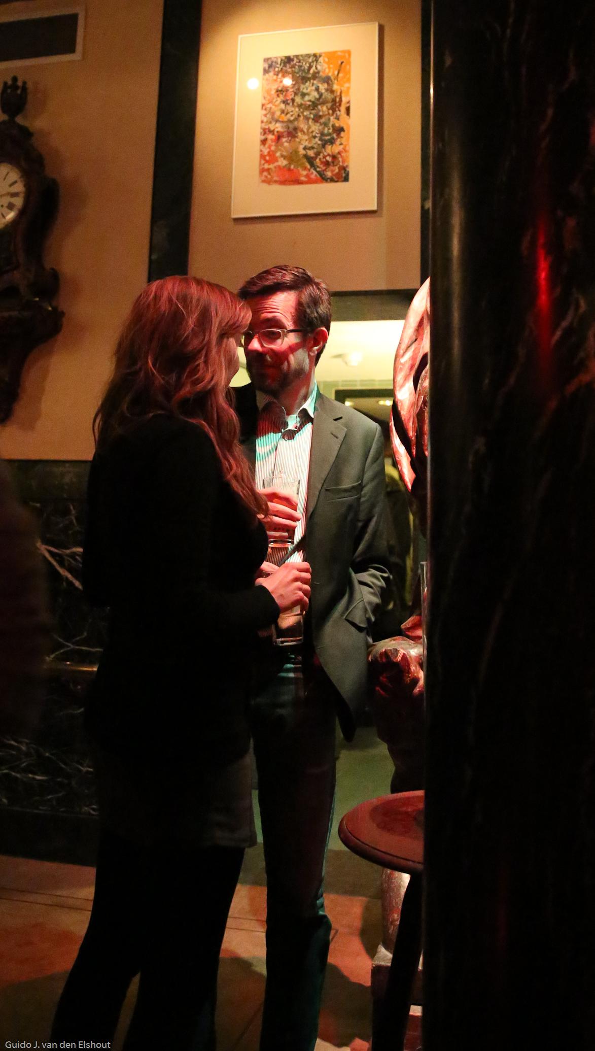 De eerste foto die ik bij terugkomst maakte is ook de eerste foto hier. Twee dames met een van de schalen met worst en kaas voor zich. Later spraken we elkaar even. Het bleek dat beide dames zich Relibloggers noemen. Nooit van het woord gehoord. Vandaar ook onderwerp voor deze eerste post over het Blogbal 2016. Op beide foto’s ziet u links Berthe van Soest, theologe van de site Berthe van Soest waar ze hoofdzakelijk over Tarot schrijft en rechts Tjanneke, oftewel Janneke Nijboer, dominee, van het blog Bermoogst. Zij bloggen dus over religieuze zaken. Weer wat geleerd. Even later ontdekt Casper dat de dominee getrouwd is met één van zijn collega’s. De wereld is echt heel klein.