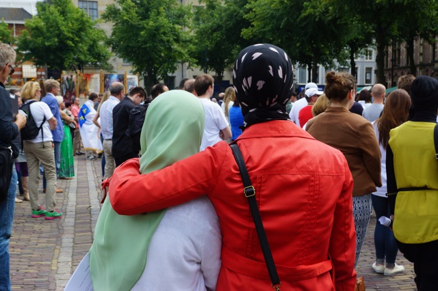 Gisteren zag ik op het Spuiplein iets bijzonders gebeuren. Terwijl de wind het geluid van het haja ilal-salah (oproep tot gebed) uit de luidspreker van de moskee in de Wagenstraat zachtjes meevoerde, maakte de moslim die op het plein tegen de schutting aan zat zich klaar om het salat Dhuhr (middaggebed) te doen.