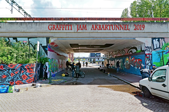 Zijn graffitivrienden besloten om een graffiti-jam te organiseren in de tunnel in de Binckhorst met als thema Akbar.