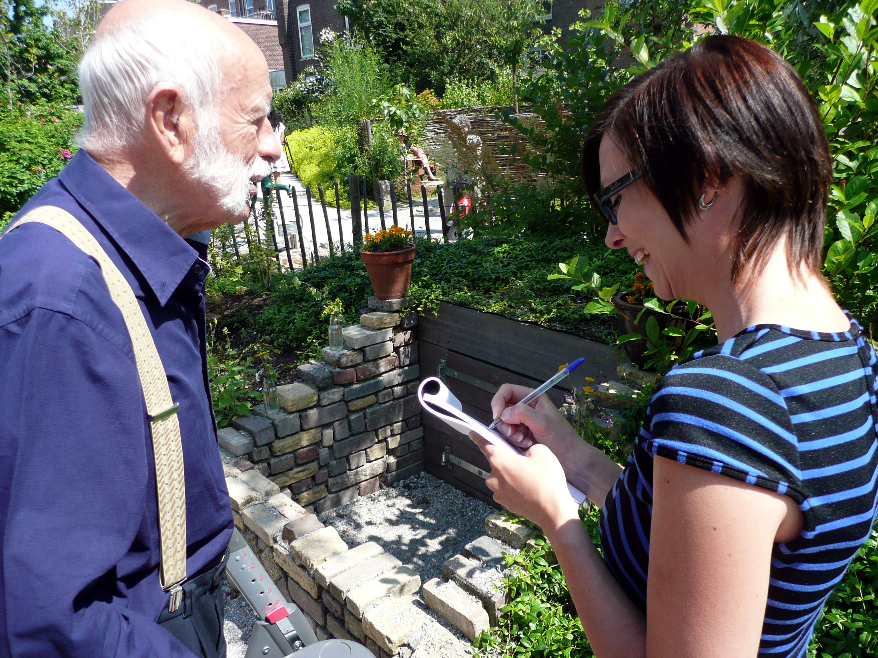 Iets verderop neemt een verslaggeefster een interview af, met één van de oudere bezoekers, en zij vraagt om zijn naam.