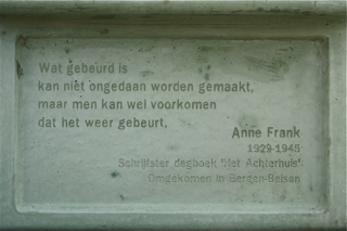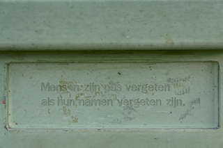 Rondom het monument zijn zes zitelementen geplaatst , op elk zitelement zijn teksten te lezen van mensen die met WOII te maken hebben gehad, soms als slachtoffer soms als overlevende.