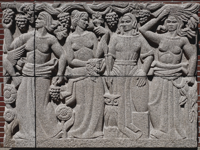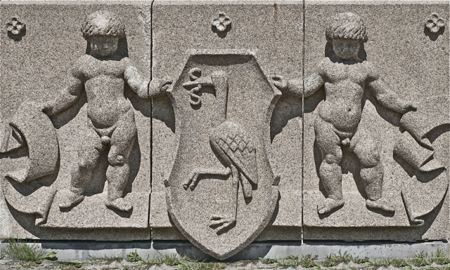 Ik kende ze wel maar het licht viel nu anders. Het reliëf dat opviel was gemaakt door Gerard Remmen. Gezien de producten die te zien zijn zal het wel met voorspoed en welvaart te maken hebben.