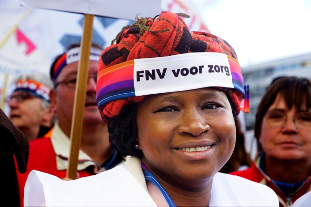 Ongeveer 2500 mensen demonstreerden zaterdag 8 november op het Spuiplein in Den Haag tegen de wet langdurige zorg. Vakbond Abvakabo en FNV hoopten met 159.000 handtekeningen en deze demonstratie de Eerste Kamer te kunnen overtuigen om tegen het wetsvoorstel te stemmen. De petitie “Red de Zorg “, werd aan Eerste- en Tweede Kamerleden aangeboden.
