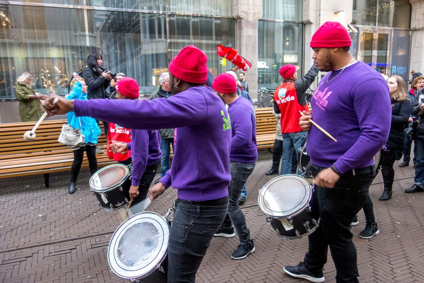 Ik fietste er toevallig langs toen de SP in de Poten kabaal aan het maken was. Trekt toch meer aandacht dan een eenvoudige roeptoeter met meute die mee roept met de roeptoeter. En ze hebben gelijk met hun protest tegen de Wajongkorting.