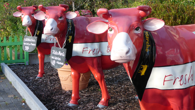 Mijn mede redacteuren hier vonden er in meerderheid geen fluit aan, althans vonden dat koeien niets met wat we voorstaan te maken hebben. Ik heb mij natuurlijk bij de meerderheid neergelegd, maar zal toch af en toe een minderheidsgeluid laten horen. Overigens vond ik deze dames langs de Autobahn in Duitsland alwaar zij een Raststätte glamour gaven.